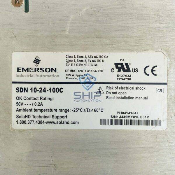 To receive a quote for Emerson Sola SDN 10-24-100C | Power Supply, Kindly email us at info@shipautomation.com